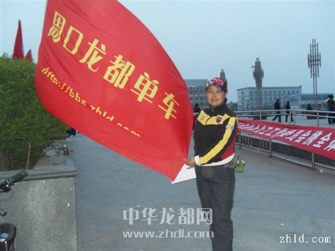 4月18日傍晚,一名網(wǎng)友把“周口龍都單車”旗幟插在五一廣場,為祈?;顒硬贾脠龅亍?/p>