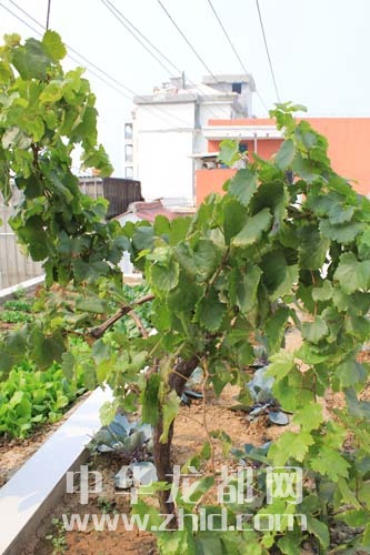 ????西蘭花、上海青、紫甘藍、生菜、茼蒿、芹菜、韭菜、葡萄……竹青在這個樓頂“小院”里種下了很多不同種類的蔬菜,但由于在布局上下了很大的功夫,因此,種類雖多但錯落有致、雜而不亂。