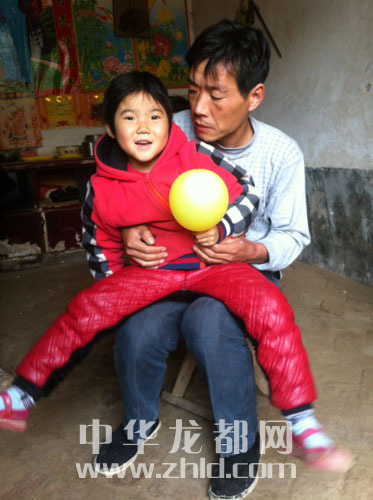 ????11月4日,記者來(lái)到何渡口村,剛到小夢(mèng)夢(mèng)家門(mén)口,就聽(tīng)到了院里傳來(lái)的哭聲。原來(lái),小夢(mèng)夢(mèng)患上血液病,可家中沒(méi)錢(qián)治療,她的爺爺奶奶只有用淚水來(lái)緩解心中的痛苦,而天真的小夢(mèng)夢(mèng)還在父親何有才的懷里撒嬌(如圖一)。