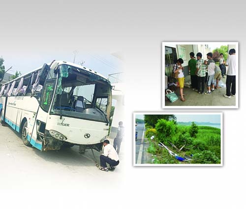 ????其中,今年19歲的馬萬里頭部受到了撞擊,正留院觀察,他告訴記者:“當(dāng)時(shí)坐在大巴車左側(cè)的第二排,大巴車的行駛速度比較快,聽到車上有人叫了一聲之后,才發(fā)現(xiàn)原來是車翻了。車翻之后我就暈倒了?!瘪R萬里又說,暈倒之后是同車的同學(xué)把他叫醒,然后一起從車門爬出來的。