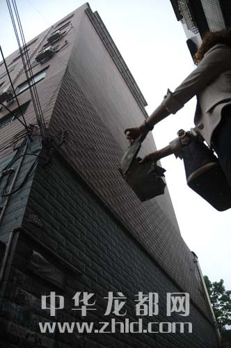 ????昨日,記者來到周口市區(qū)七一路與工農(nóng)路交叉口西側(cè)的周口市工信局辦公樓。記者注意到,這是一棟臨街樓,其中一樓、二樓是一家正在營業(yè)的藥店。樓東面是一條胡同,穿過胡同是周口市工信局家屬院。這條胡同是居民們進(jìn)出的唯一通道,脫落水泥塊的地方就是胡同的正上方的樓頂。記者看到,接近樓頂?shù)耐鈮ι?,鑲嵌著兩行水泥制作的裝飾物。脫落的水泥塊就來自這種裝飾物。