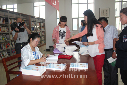 ????昨日16時,在市圖書館綜合閱覽室,市文化局曹克宏、市圖書館李佳和本報田維國、董雪丹等各單位相關負責人參加了捐贈儀式,曹克宏向柳韻頒發(fā)了愛心捐贈榮譽證書。捐贈儀式結束后,柳韻在現(xiàn)場舉行了簽字贈書活動(如圖)。面對讀者的熱情,柳韻一一簽字贈書,現(xiàn)場又簽贈系列圖書近百冊。