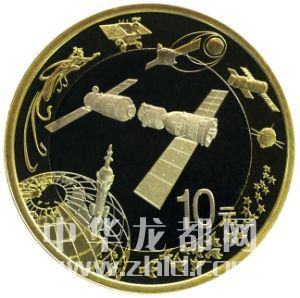 據(jù)了解,此次發(fā)行的中國航天普通紀(jì)念幣面額為10元,直徑為27毫米,材質(zhì)為雙色銅合金,正面主景圖案為國徽圖案,其上方刊“中華人民共和國”國名,下方刊年號“2015”。中國航天普通紀(jì)念幣背面主景圖案為神舟九號近軌對接航天器圖案,背景外環(huán)上方自右起分別為東方紅一號衛(wèi)星、神舟五號、嫦娥一號、探月月球車、代表中國古代飛天夢的民間圖騰圖案,左下方為抽象的地球和長2F運載火箭圖案,右下方為由和平鴿演變成的五角星和星星圖案。
