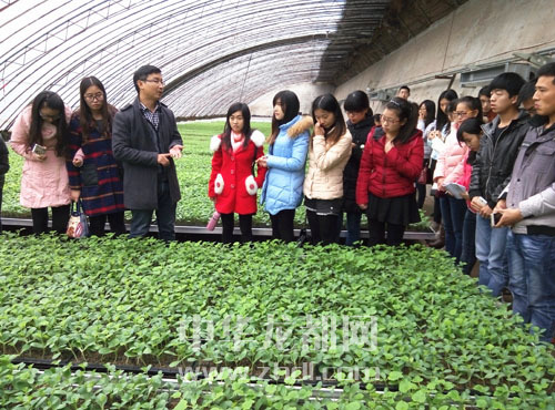 ????近年來,扶溝蔬菜研究院通過不懈努力,建設了各種設施蔬菜的棚型模式,成為了新品種示范展示基地、大學生實習基地。圖為河南農(nóng)大園藝學院的60名師生到該縣觀摩學習。
