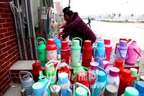 ????本報訊 這個冬天雖然寒冷,但在鄲城縣一高校園超市門口熱水器旁卻始終暖意融融。帶來暖意的除了熱氣騰騰的開水,還有幾位超市阿姨的愛心舉動。原來,超市員工蘇玉環(huán)、薛玉玲等人在這個冬天一直幫學生們接熱水(如上圖)。她們的善意舉動不僅免去了學生們排隊打水的辛苦,還避免了學生們接水燙傷的危險。