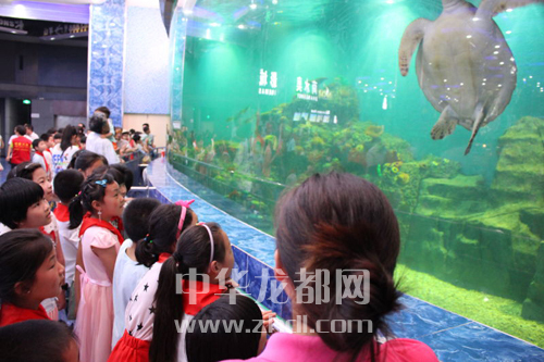 ????7月2日,在周口市義工協(xié)會(huì)開(kāi)展的“繽紛夏日 快樂(lè)童年”公益活動(dòng)中,商水黃寨半坡店小學(xué)的30名留守兒童與周口市區(qū)的30名兒童結(jié)成友誼對(duì)子。圖為當(dāng)日孩子們一起參觀(guān)海洋館。晚報(bào)記者 張燕 攝