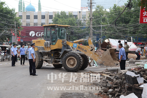 ????通過多日來不懈努力,西大街(中州路至荷花路段)和老街上的占道簡易棚,除一處尚在自拆外,其余悉數(shù)拆除;陳州街的各類私搭亂建構(gòu)筑物也全部拆除,小吃攤點整齊有序地擺放在交通隔離護欄以內(nèi)。