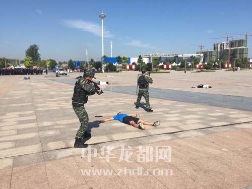 ????當(dāng)日9時許,2016反恐實戰(zhàn)應(yīng)急拉動演練正式開始。按照警情設(shè)置,此次實戰(zhàn)演練針對周口火車站這一重點反恐目標(biāo),以暴恐嫌疑人突襲、砍殺、綁架乘客為預(yù)想方案實施反恐應(yīng)急聯(lián)動。演練模擬5名暴恐嫌疑人偽裝成游客混入周口火車站廣場制造事端,砍殺無辜群眾,并引爆一枚自制炸彈,因爆炸彈片飛濺起火,數(shù)名群眾受傷。接到報警后,市公安局迅速啟動反暴恐應(yīng)急預(yù)案,武警、特警、消防、120急救、移動、電力等單位迅速到達現(xiàn)場,疏散游客、圍堵暴徒、封鎖路段。特警、武警處置分隊緊密配合,戰(zhàn)術(shù)推進,當(dāng)場擊斃2名暴恐嫌疑人,另外3名暴恐嫌疑人見此情景,挾持2名人質(zhì)躲入房間,負(fù)隅頑抗。在談判無果的情況下,指揮中心下達強突指令,武警、特警人員果斷行動,一舉抓獲3名暴恐嫌疑人,成功解救人質(zhì)。