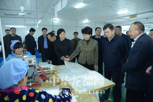 ????省委常委、宣傳部長(zhǎng)趙素萍一行在市領(lǐng)導(dǎo)徐光等人的陪同下,到鄲城縣企業(yè)調(diào)研。記者 王亞輝 攝