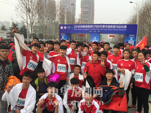 ????本報(bào)訊 千年周口情,萬眾馬拉松。12月18日上午,由中國(guó)田徑協(xié)會(huì)、中華慈善總會(huì)、河南省慈善總會(huì)、周口市人民政府主辦,周口市體育局、周口廣播電視臺(tái)、周口市慈善總會(huì)、河南路跑文化傳媒有限公司承辦的2016河南誠(chéng)森周口馬拉松暨中國(guó)慈善馬拉松賽在我市中心城區(qū)激情開賽,來自世界各地的5300余名選手報(bào)名參加了比賽。