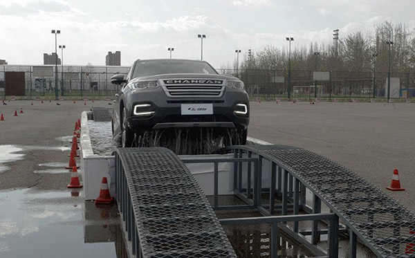 第三個項目是緊急避讓,體驗車輛抓地性;接下來的側面斜坡項目長安CS95順利通過,車身并未有異響。