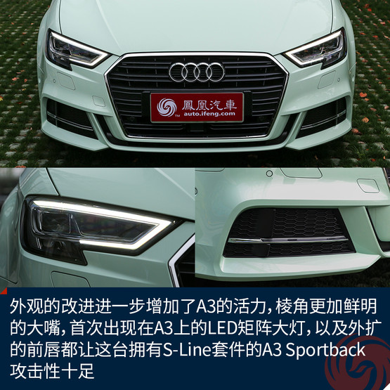 新顏色的加入讓原本青春靚麗的A3變得更加鮮嫩,雖說這樣的顏色不一定適合所有人,但是至少我是很喜歡的,應該不少女生也會心生好感。而外觀的改進進一步增加了A3的活力,棱角更加鮮明的大嘴,首次出現(xiàn)在A3上的LED矩陣大燈,以及外擴的前唇都讓這臺擁有S-Line套件的A3 Sportback攻擊性十足,同時全系都將標配氙氣大燈也是誠意滿滿。而高配置的A3 Limousine會在中網(wǎng)多一些鍍鉻裝飾來凸顯質(zhì)感,當然前唇的造型也會收斂許多。