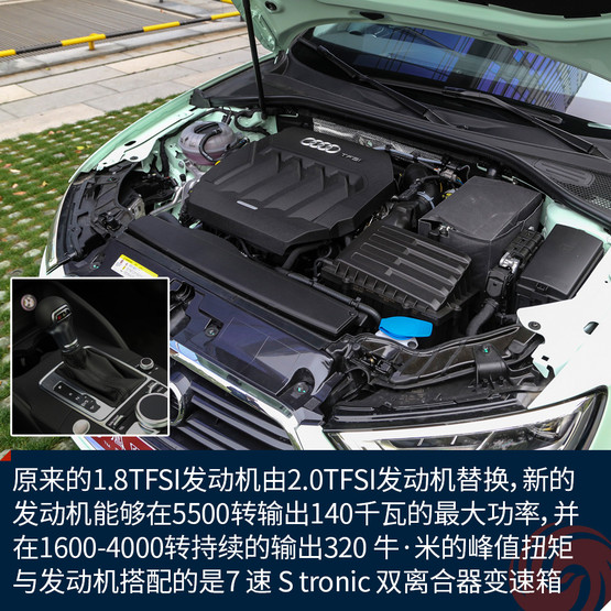 動力的改變也許是此次另一個升級的重點,除了1.4TFSI發(fā)動機,原來的1.8TFSI發(fā)動機將由2.0TFSI發(fā)動機替換,新的發(fā)動機能夠在5500轉(zhuǎn)輸出最大功率為140千瓦,并在1600-4000轉(zhuǎn)持續(xù)的輸出320 ?!っ椎姆逯蹬ぞ亍Ec兩臺發(fā)動機搭配的7 速 S tronic 雙離合器變速箱。憑借動力的優(yōu)勢,新A3 40TFSI車型的百公里加速時間縮短了0.1秒,但是油耗會相應的有所減少。