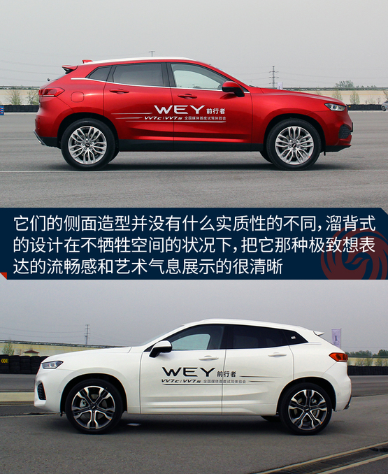 VV7C(文中簡稱普通型)和VV70S(文中簡稱運動型)的外觀采用了溜背流線的設計風格,俏麗的模樣賦予了它極高辨識度,用驚艷、夠國際化還形容一點都不過!就目前來看,自主品牌中并無這種柔美流線設計風格的車型;至于它的車身尺寸,長寬高4749×1931×1655毫米,軸距2950毫米。而普通版和運動版車型的區(qū)別,主要是外觀設計方面,包括中網(wǎng)格柵、前保險杠、輪圈以及排氣造型都有差異。