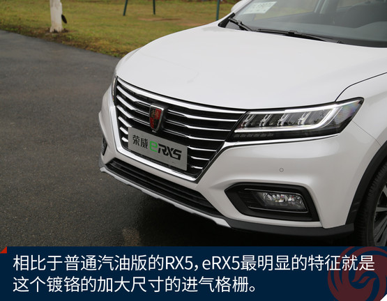 榮威eRX5的外觀設計來自于上汽榮威家族最新的“律動設計”語言,整體外觀呈現(xiàn)出的是“鯨頭燕尾”的特點。通過車頭下壓、腰線勾勒、尾部內(nèi)切等設計,詮釋了“律動”的美學理念。與汽油版RX5相比,車頭的鍍鉻前格柵尺寸更加大,造型更為舒展,與大燈融為一體。eRX5基于RX5采用的SSA+平臺打造,提供了插電版與純電版兩個版本,這兩款車實際幾乎是同時開發(fā)的,尺寸方面更是一模一樣。插電版的eRX5車身兩側(cè)分別為加油口和充電口,純電動續(xù)航60公里,綜合續(xù)航650公里。車身隨處可見新能源的標識,并且還擁有新能源的專屬顏色銀葉金。