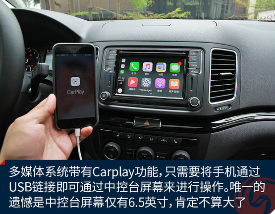 內(nèi)飾方面,夏朗仍然傳承著大眾品牌的經(jīng)典設(shè)計風(fēng)格,基本不用分辨就知道這是一款大眾汽車。中央的多媒體系統(tǒng)功能豐富,并且?guī)в蠧arplay功能,只需要將手機通過USB鏈接即可通過中控臺屏幕來進行操作。唯一的遺憾是,夏朗的中控臺屏幕僅有6.5英寸,在現(xiàn)在看來肯定不算大了。