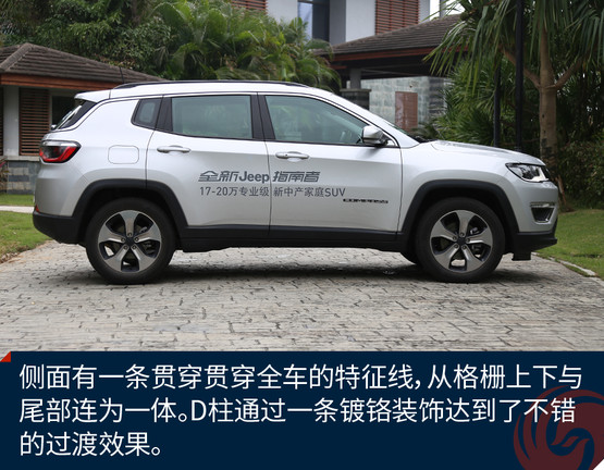 全新指南者的外觀,在諜照之初就有不少人把它和大切諾基聯(lián)系在一起,七孔的經(jīng)典格柵變得有些扁平,跟全新設(shè)計(jì)的大燈完美的融合在一起,下方寬大的黑色下格柵將視覺(jué)中心上移,讓指南者看起來(lái)更高大威猛。這些小的細(xì)節(jié)都與Jeep的旗艦車(chē)型大切諾基有所神似。而這樣的產(chǎn)品標(biāo)簽也讓指南者變得身價(jià)倍增,反觀側(cè)面指南者有一條貫穿貫穿全車(chē)的特征線,從格柵上下與尾部連為一體。D柱的處理也有自己的特色,通過(guò)一條車(chē)頂?shù)腻冦t裝飾達(dá)到了不錯(cuò)的過(guò)渡效果。尾部就讓指南者自身的特征變得更加明顯,也不那么大切了起來(lái)。LED燈帶狀的尾燈,讓尾部的造型鮮活起來(lái),圓潤(rùn)的車(chē)尾讓陽(yáng)剛的車(chē)頭,多了一點(diǎn)柔和的色彩??赡芤灿∽C了那句話,“男人不止一面”。全新指南者車(chē)身尺寸4415*1819*1625毫米,軸距2636mm,車(chē)身尺寸并不大,但是內(nèi)部空間卻不錯(cuò)。對(duì)于新指南者來(lái)說(shuō),大切的標(biāo)簽很重要,它代表了純正的血統(tǒng),同時(shí)它也不僅僅這一個(gè)標(biāo)簽,它還有屬于自己的個(gè)性化色彩,一輛城市化SUV的氣質(zhì)。