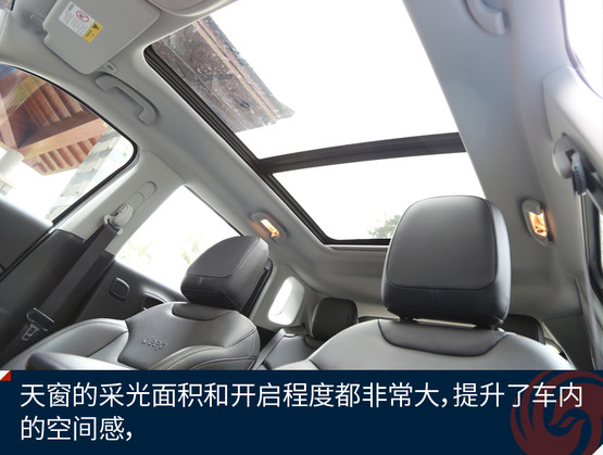新指南者橫向空間和腿部空間表現(xiàn)都不錯(cuò),在頭部空間上略有欠缺,后排在坐直的情況下,頭部空間比較壓抑,幸好全景天窗可以彌補(bǔ)這一點(diǎn),指南者的全景天窗擴(kuò)展了車(chē)內(nèi)的采光面積及視覺(jué)廣度。