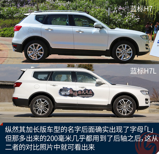 提到加長(zhǎng),我腦子中的第一反應(yīng)是軸距加長(zhǎng)幾十甚至上百毫米,然而,哈弗藍(lán)標(biāo)H7L并不是這樣。縱然其加長(zhǎng)版車型的名字后面確實(shí)出現(xiàn)了字母「L」,但那多出來的200毫米幾乎都用到了后軸之后,這從二者的對(duì)比照片中就可看出來。