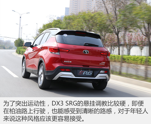 東南DX3 SRG很明顯是為85后年輕群體打造的一款車,雖然它的最終用戶不一定是年輕人,但不可否認(rèn)東南DX3 SRG是同級(jí)中顏值頗高的一員,無論從哪個(gè)角度都足夠讓人驚艷;試駕活動(dòng)中全新的動(dòng)力組合非常出色,尤其是底盤調(diào)教給我留下了深刻的印象,這對(duì)于年輕消費(fèi)者來說無疑是個(gè)利好的期待,作為10萬元級(jí)別SUV,DX3 SRG有很強(qiáng)的實(shí)力與競品爭奪市場(chǎng)。(圖/文 張嘉文)