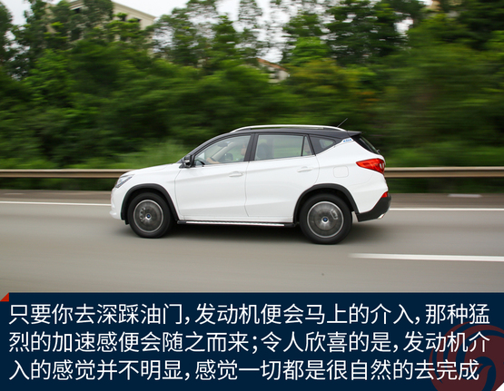 ????????在混合動(dòng)力模式下,將駕駛模式調(diào)整為SPORT模式,由于起步階段是電機(jī)發(fā)力,因此并不像汽油車那樣靠吊轉(zhuǎn)速來(lái)獲得最大的扭矩。此時(shí),你只需將油門踩到底,任由宋DM的電機(jī)和發(fā)動(dòng)機(jī)發(fā)力就行,而大扭矩帶來(lái)的直接體驗(yàn)就是,身體像是被摁壓在座椅上,任由車輛來(lái)讓我體驗(yàn)G值給身體所帶來(lái)的快感,而這種“變態(tài)”的加速感體驗(yàn)確實(shí)是非常的過(guò)癮;可當(dāng)你還在意猶未盡地回味這速度高潮的時(shí)候,不知不覺(jué)就到了該踩剎車的節(jié)點(diǎn)。
