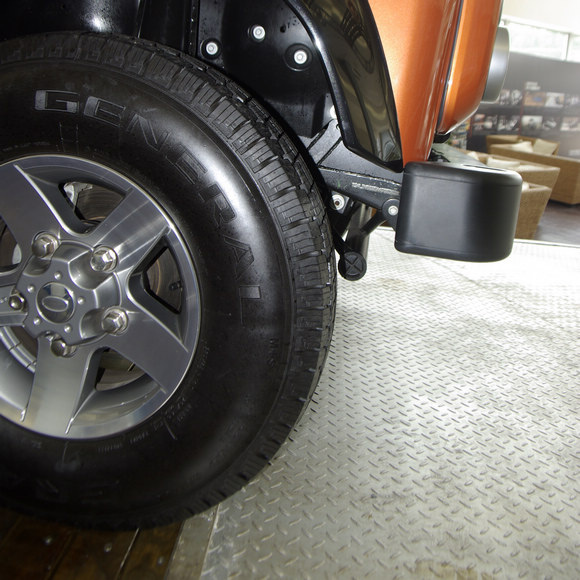 ????衛(wèi)士的接近角達(dá)到了驚人的47度,厚實的鋼板加工而成的前杠也是硬派越野車的標(biāo)志,這樣的前杠不僅可以在沖坡時保護車體,更可以掛載電動絞盤等設(shè)備。