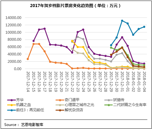 于12月29日上映的國(guó)產(chǎn)喜劇IP“前任系列”的第三部作品《前任3:再見前任》整體表現(xiàn)也較優(yōu)異,影片用接地氣的風(fēng)格闡釋愛情與成長(zhǎng)的主題,讓人捧腹又直戳人心,滿意度80.7分居檔期第二位;在良好口碑支撐下,影片票房也表現(xiàn)出了逆市上揚(yáng)的巨大潛力。