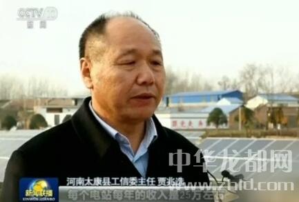 “塘上發(fā)電、塘下養(yǎng)魚。在河南太康縣劉寨村,原來廢棄的水塘不僅重新養(yǎng)上了魚,還又建了光伏太陽能發(fā)電設備。貧困戶劉宗林告訴記者,現(xiàn)在不僅用電不花錢,每年還有一定的分紅?!碑斖淼男侣劼?lián)播畫面中,開始就提到了太康縣老冢鎮(zhèn)劉寨村的發(fā)電項目。在長達1分41秒的報道中,介紹太康縣的內容占了1分多鐘。