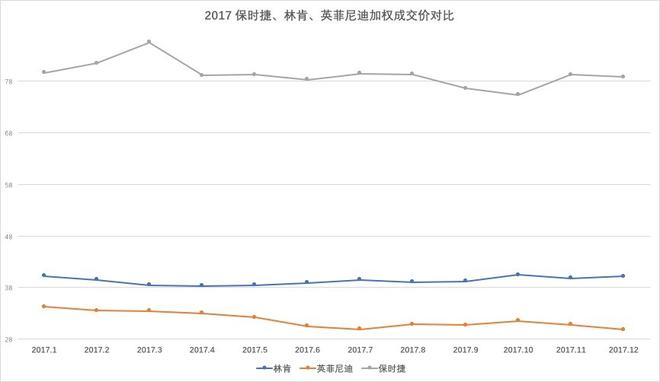 保時(shí)捷、林肯、英菲尼迪銷量在5-10萬之間為第三陣營,保時(shí)捷品牌比較節(jié)制,對(duì)銷量一直沒有過多追求,銷售方式與其他豪華品牌不同,多以訂單方式銷售,經(jīng)銷商利潤連續(xù)兩年行業(yè)中為最好;全進(jìn)口車型為主的林肯成交價(jià)在39萬上下,今年銷量增速最快,價(jià)格走勢(shì)也非常好,但產(chǎn)品進(jìn)入銷售中期,與其他品牌新款車型對(duì)比不占優(yōu)勢(shì);英菲尼迪今年沒有太多走量新車,國產(chǎn)車型也面臨改款,成交價(jià)在30萬上下,隨新款QX50上市,Q50L改款,銷量和成交價(jià)有望走高。