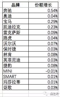 ■2017年12個(gè)品牌豪華車市場份額為10.77%,環(huán)比增長1.8%