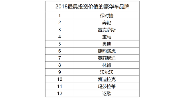 2018年經(jīng)銷商值得投入的品牌推薦保時(shí)捷、奔馳、雷克薩斯;具有增長潛力的品牌推薦寶馬、奧迪、捷豹路虎;謹(jǐn)慎關(guān)注的品牌有瑪莎拉蒂、謳歌。