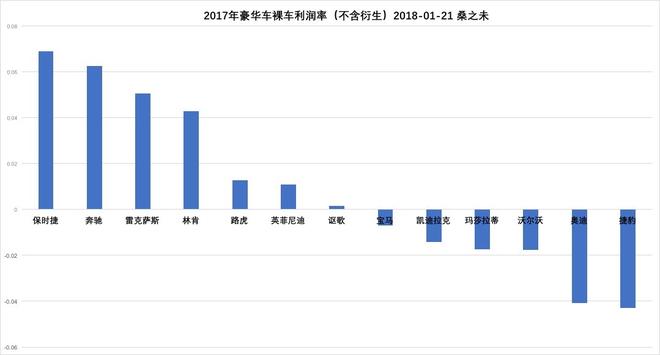 寶馬、奧迪在2018年經(jīng)銷商利潤有望轉(zhuǎn)好,隨寶馬X3國產(chǎn)、奧迪Q5全新?lián)Q代,銷售結(jié)構(gòu)將有所改善。捷豹路虎隨國產(chǎn)化產(chǎn)品數(shù)量進(jìn)一步增加,有助于增加在細(xì)分市場的競爭力;凱迪拉克、沃爾沃是依靠價(jià)格取勝的品牌,2018年如果能提升品牌力,經(jīng)銷商利潤有希望得以改善?,斏?、謳歌由于銷量太小,成交價(jià)格一個(gè)最高,一個(gè)最低,都對(duì)其銷量、利潤都有影響。