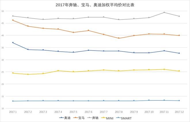 以官方披露的銷量口徑計(jì)算,奔馳(含smart)全年銷量為610,965輛,增長25.9%,成為中國市場首家銷量超過60萬輛的豪華車品牌,銷售總量名列第一;奧迪全年銷量為595,700輛,增長1.1%;寶馬(含Mini)全年銷量為594,388輛,增長15.1%。如果按單一品牌統(tǒng)計(jì),奧迪品牌銷量為595,700輛,寶馬品牌為56萬輛,奔馳品牌(含v級(jí)車)為587,868輛,奧迪品牌蟬聯(lián)2017年中國豪華車第一。