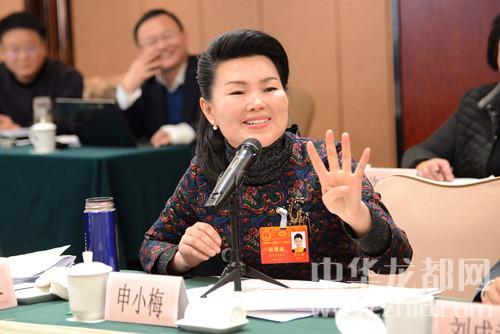 申小梅代表就如何發(fā)揚光大傳統(tǒng)文化藝術(shù)提出建議。記者王映攝