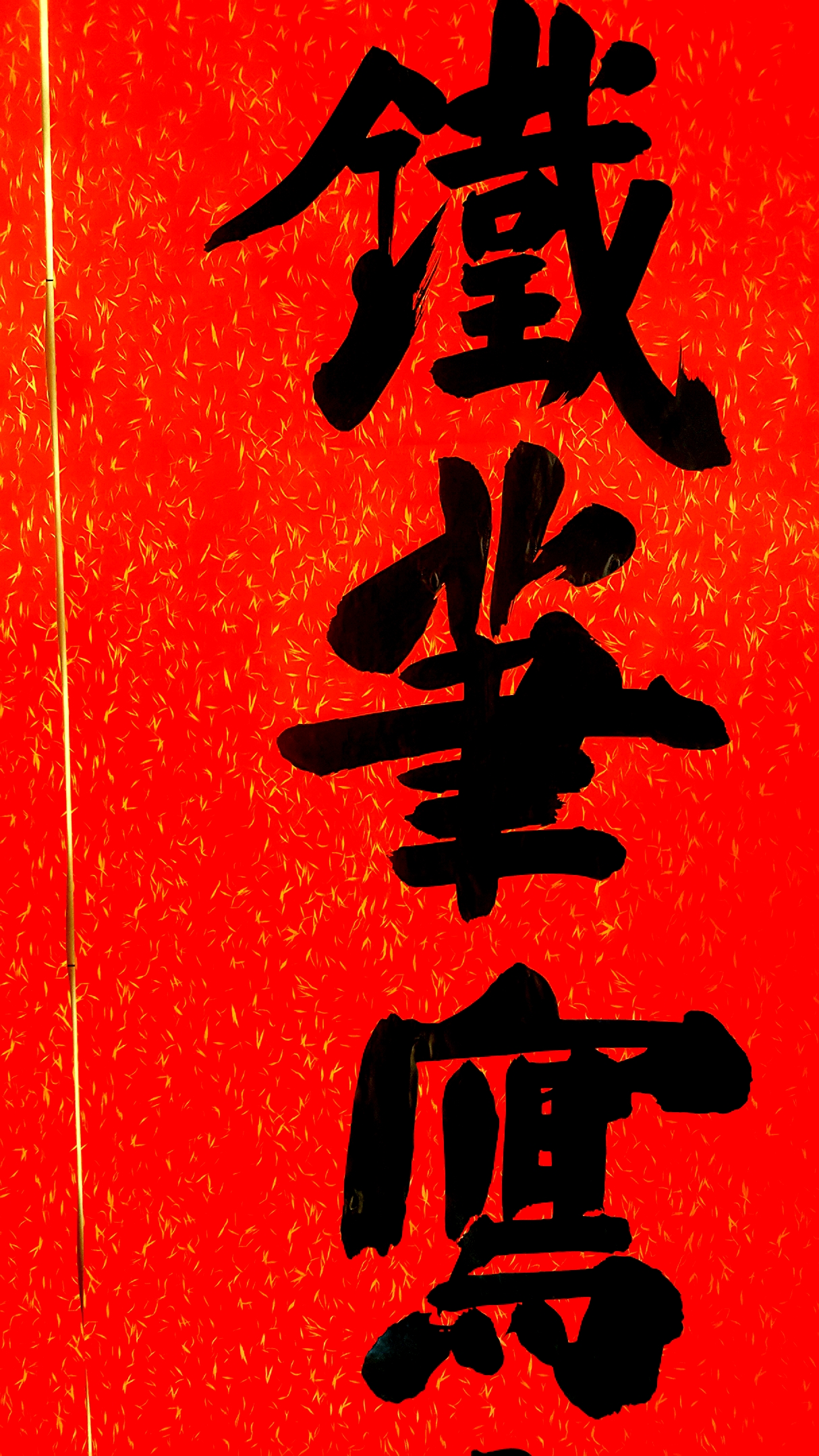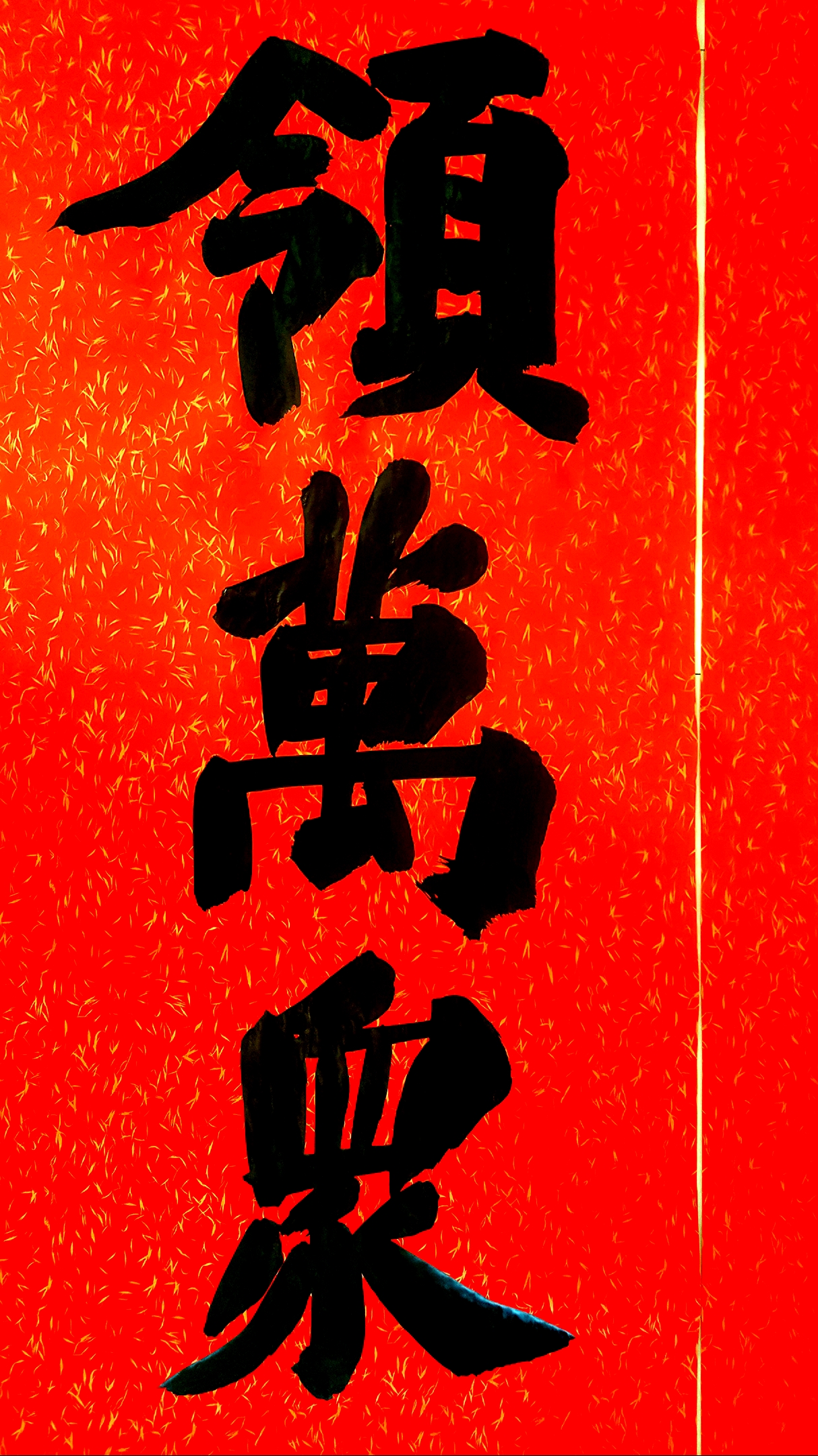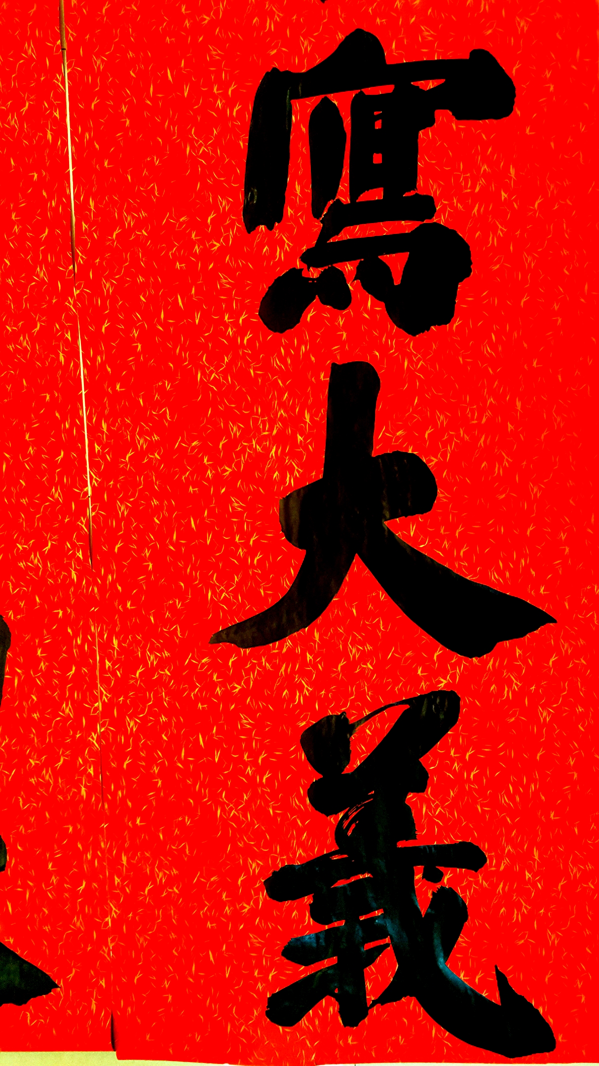 邢懷章以歐陽通筆法融合魏碑,大楷榜書創(chuàng)作而成,春聯(lián)長(zhǎng)達(dá)5米,每字徑80公分左右,一氣呵成,不計(jì)工拙,近兩個(gè)小時(shí)完成兩幅巨型春聯(lián),表達(dá)了對(duì)周口報(bào)業(yè)集團(tuán)的祝福,映出了喜慶的年味。