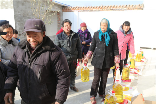 當(dāng)日上午,雖然天氣寒冷,可葉莊行政村村室院里卻暖意融融。該村村主任熊茂禮正在把備好的年貨發(fā)放到49戶村民的手中?!胺浅8兄x茂禮這么遠(yuǎn)回老家看望我們這些困難戶,讓我們過上一個(gè)好年。”現(xiàn)年76歲的村民張多朗是個(gè)五保戶,接過熊茂禮送上的年貨連聲道謝。熊茂禮鼓勵(lì)困難戶一定要對(duì)生活充滿信心,樂觀地面對(duì)生活。同時(shí),希望困難戶要保持良好心態(tài),積極面對(duì)困難,自強(qiáng)自立,早日擺脫困境。