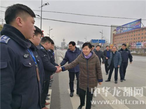 在鄲城縣城新華路與迎賓大道路口,羅文閣、李全林和一線值勤的環(huán)衛(wèi)工人、城管隊(duì)員一一握手,深切關(guān)心環(huán)衛(wèi)工人和城管隊(duì)員的冷暖。“看手多涼,要穿厚點(diǎn)兒呀。大年三十了,你們放棄和家人團(tuán)圓吃餃子的機(jī)會(huì),在為我們的縣城保潔,我們城市的清潔有賴于你們。你們辛苦了,給你們拜個(gè)年,祝你們身體健康?!绷_文閣向環(huán)衛(wèi)工人遞上慰問(wèn)金時(shí),樸實(shí)的話語(yǔ)、殷殷的關(guān)懷把黨的溫暖涌向環(huán)衛(wèi)工人的心窩兒?!安恍量?,領(lǐng)導(dǎo)來(lái)看俺,俺里比吃餃子暖和?!杯h(huán)衛(wèi)工人邊鼓掌邊道出了內(nèi)心的激動(dòng)。