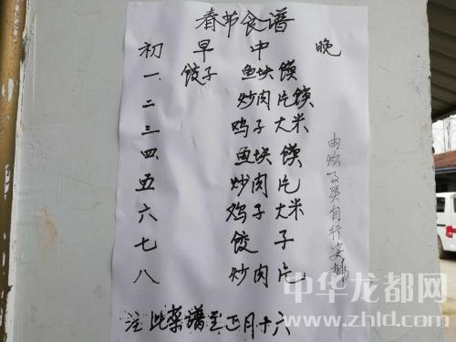 午飯時,老人們井然有序地端著饅頭、大米粥、小酥肉等在餐廳內(nèi)就餐。兩個剛吃過飯的老人仔細查看貼在食堂門口的《春節(jié)食譜》,路過的一位老太太開玩笑說他們吃著碗里看著鍋里。李學告訴記者:“從正月初一到正月十五,敬老院的菜譜葷素搭配,每日三餐不重樣。5名炊事員一門心思想讓老人吃得香、吃得鮮、吃得好?!蓖瑫r,記者發(fā)現(xiàn)在敬老院的前排房間前,兩名服務(wù)員正推著餐車一間挨著一間為行動不便的老人們送水、送飯。