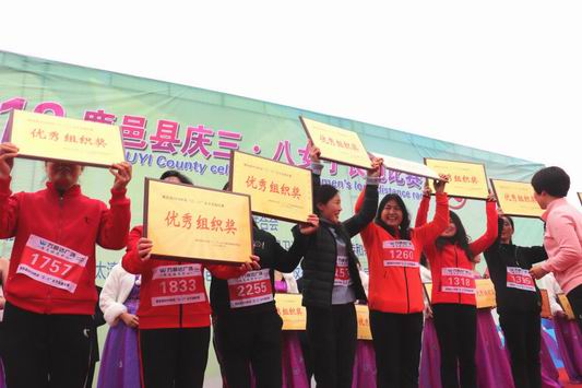 隨著鹿邑縣委書記梁建松宣布比賽開始,5000多名運(yùn)動(dòng)員你追我趕,奮力向前。本次參賽隊(duì)伍中有75歲的退休女職工, 12歲的學(xué)生。 經(jīng)過激烈的角逐,來自鹿邑縣人民法院的楊寒梅第一個(gè)沖過終點(diǎn)線獲得冠軍,縣第一高級(jí)中學(xué)的王俊敏獲得亞軍,萬順達(dá)實(shí)業(yè)有限公司的史靈獲得季軍。