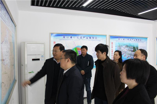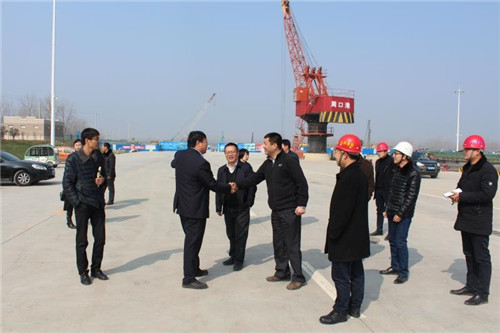 中華龍都網訊(周口報業(yè)全媒體記者宋風通訊員段傳奇文/圖)3月9日上午,省重大項目專項服務督導組組長邵應南率隊到周口港區(qū)中心港碼頭檢查指導工作。周口市發(fā)改委重點項目辦副主任董蘭,港區(qū)黨委委員杜廣賢,港區(qū)招商發(fā)展局局長高青松陪同。