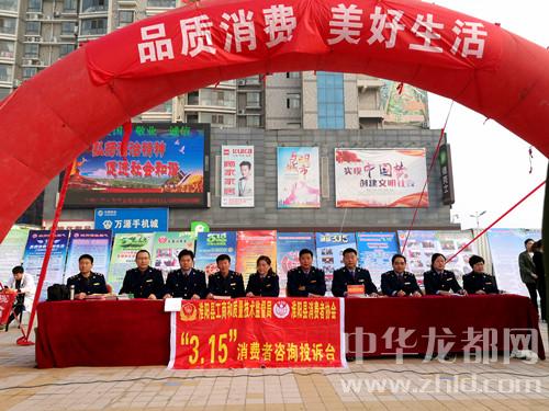 中華龍都網(wǎng)訊(周口報業(yè)全媒體記者 杜欣 文/圖)3月15日上午,淮陽縣消費者協(xié)會組織當(dāng)?shù)叵嚓P(guān)職能部門,在潤德廣場舉辦2018年3·15國際消費者權(quán)益日紀(jì)念大會暨大型宣傳咨詢服務(wù)活動?;搓柨h人大副主任、縣消費者協(xié)會會長霍偉,淮陽縣人民政府副縣長薛燕等參加活動?;顒蝇F(xiàn)場,職能部門專門設(shè)立了執(zhí)法“別動隊”,在接受消費者現(xiàn)場投訴后,隨時出動處理。