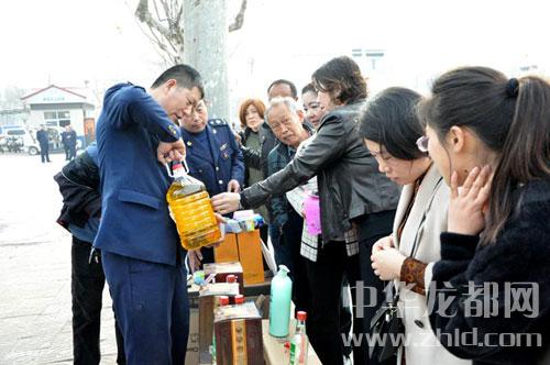 活動現(xiàn)場分為投訴咨詢受理區(qū)、假冒偽劣商品展示區(qū)、宣傳板面展示區(qū),通過分區(qū)域展示經(jīng)檢大隊(duì)和12個(gè)工商所查繳的大量的假冒偽劣商品,現(xiàn)場向廣大群眾講解辯假識劣常識,傳播科學(xué)的消費(fèi)理念和消費(fèi)安全知識,提高消費(fèi)者的法律意識和維權(quán)意識?;顒庸渤鰟尤藛T66人、宣傳車12輛,制作宣傳展板7塊,發(fā)放法律法規(guī)宣傳資料5000余份,現(xiàn)場受理消費(fèi)投訴28件,取得了良好的社會效果。