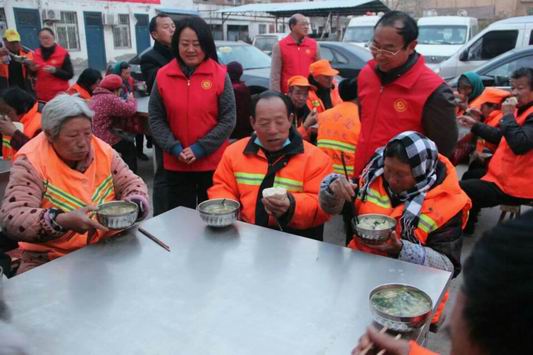 一位老大娘走進(jìn)就餐點(diǎn),張玉潔上前把大娘攙扶坐下,忙端來熱騰騰的雞蛋湯、饅頭并讓老人家慢慢吃。老人家哽咽著說:“我是芝麻洼鄉(xiāng)里人,給這住閨女家,走到這見人很多過來看看,沒想到這是免費(fèi)吃早飯的地方,還都端到跟前、對(duì)我恁好,除了俺仨閨女沒有人對(duì)我老婆子這樣好過,我是哪輩子修來的福??!