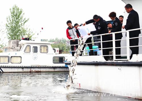 中華龍都網(wǎng)訊(周口報業(yè)全媒體記者 李瑞才 通訊員 胡洪濤 劉傳保 文/圖)4月13日,河南省水生生物增殖鹿邑渦河段放流活動順利進(jìn)行,鹿邑縣農(nóng)業(yè)局局長陳東震下達(dá)放流令,100多萬尾魚苗撒著歡兒入流渦河清水中。其中鰱魚約46.8萬尾、鳙魚約46.8萬尾、草魚約17.4萬尾。