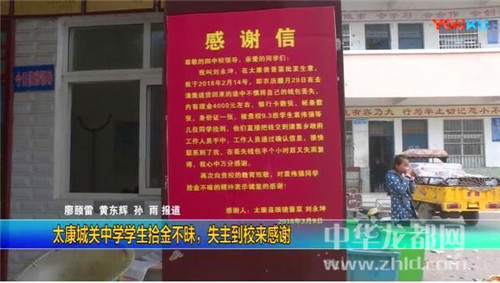 2月14日,袁偉強(qiáng)與同學(xué)一道上街玩。在太康縣清集鎮(zhèn)政府門口,袁偉強(qiáng)發(fā)現(xiàn)一個(gè)錢包。撿起一看,錢包里有一沓現(xiàn)金、銀行卡、身份證等物品。左思右想,袁偉強(qiáng)決定把錢包交給鎮(zhèn)政府工作人員。在清集鎮(zhèn)政府工作人員的幫助下,終于找到了失主劉永坤。拿到失而復(fù)得的錢包,劉永坤執(zhí)意要感謝袁偉強(qiáng),電話聯(lián)系了幾次,都被袁偉強(qiáng)拒絕。劉永坤心里總是過(guò)意不去,就寫了一封感謝信,制作了一面錦旗,送到袁偉強(qiáng)所在學(xué)校,表達(dá)自己的感激之情。