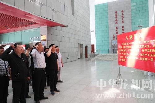活動前,佩戴黨徽老黨員和部分村民代表在村委院內(nèi),舉行了簡約而不失莊重的升旗儀式?!拔抑驹讣尤胫袊伯a(chǎn)黨,擁護黨的綱領(lǐng),遵守黨的章程,履行黨員義務(wù),執(zhí)行黨的決定,嚴守黨的紀律,保守黨的秘密…… ”活動中,老黨員們在吉鴻昌將軍雕塑前重溫入黨誓詞,并向黨旗莊嚴宣誓。