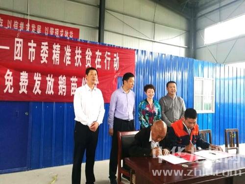 中華龍都網(wǎng)訊(周口報業(yè)全媒體記者 張猛 通訊員 胡永濤)5月11日上午,團(tuán)市委駐西華縣東王營鄉(xiāng)李方口村工作隊聯(lián)合周口建成鵝業(yè)舉行為貧困戶獻(xiàn)愛心免費發(fā)放鵝苗儀式。團(tuán)市委副處級紀(jì)檢員楊朝暉,西華縣副縣長毛茹,縣政府辦公室副主任寇新兵,東王營鄉(xiāng)黨委書記彭杰等出席儀式。