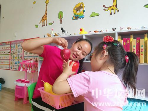 在舞蹈室,孩子們跟著老師的樣子跳《兩只老虎》《小蜜蜂》;在單訓(xùn)室,張靜用手捂著嘴(孩子會看口形)慢慢地說:“圓圓的、甜甜的、紅紅的——蘋果”,孩子聽到了聲音,很快從裝滿水果模型的筐子里挑出了兩個“蘋果”;于倩貼在孩子的耳邊描述著玩具的顏色,孩子就把對應(yīng)顏色的積木挑出來;范玉智聽到孩子把梨讀成了“姨”,她就用自己的嘴辱貼近孩子的手背上,用力地用“了”的聲音震動著孩子的小手,然后反復(fù)張大口重復(fù)著“了”,讓孩子看自己舌頭的振動……“雷!”孩子又學(xué)了一句,雖然發(fā)音不準(zhǔn)確,但發(fā)出了振動的翹舌音,范玉智微笑著給了一個擁抱……