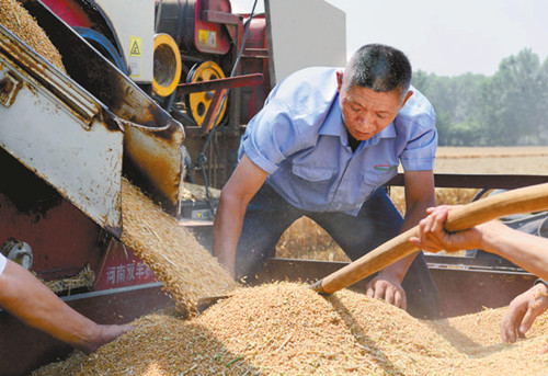 樊軍亭在裝運(yùn)收獲的小麥