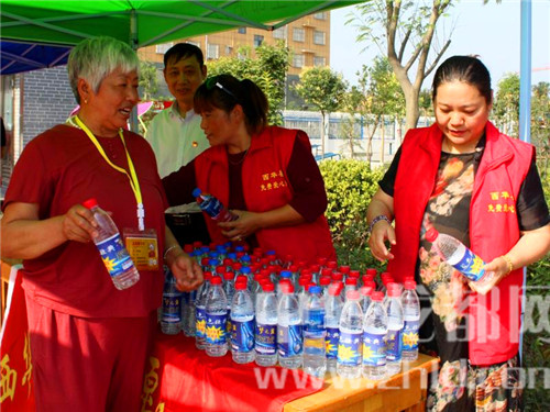 愛心助考活動現(xiàn)場,西華縣真愛醫(yī)院黨支部設(shè)立的“黨旗引領(lǐng)、護(hù)航高考”的大紅愛心助考條幅分外惹眼,黨員志愿者們免費(fèi)為考生提供藿香正氣水、風(fēng)油精、退燒藥等,并有醫(yī)護(hù)人員現(xiàn)場提供急救服務(wù)。在西華縣恒生醫(yī)院黨支部愛心助考點(diǎn)前,3名醫(yī)護(hù)人員正在免費(fèi)為考生及家長提供風(fēng)油精、清涼油、仁丹、藿香正氣水等防暑降溫藥品和急救藥品,還有擔(dān)架、120急救車輛等。西華縣北華醫(yī)藥黨支部愛心助考服務(wù)站的黨員志愿者,正在向考生免費(fèi)提供防暑降溫藥、感冒發(fā)燒藥、拉肚子藥等藥品。黨員志愿者愛心企業(yè)代表宋女士說:“在高考期間,我們?yōu)榭忌凹议L免費(fèi)提供礦泉水、芭蕉扇、清涼油等多項(xiàng)服務(wù),除了愛心,更多的是一份責(zé)任和使命?!?/p>